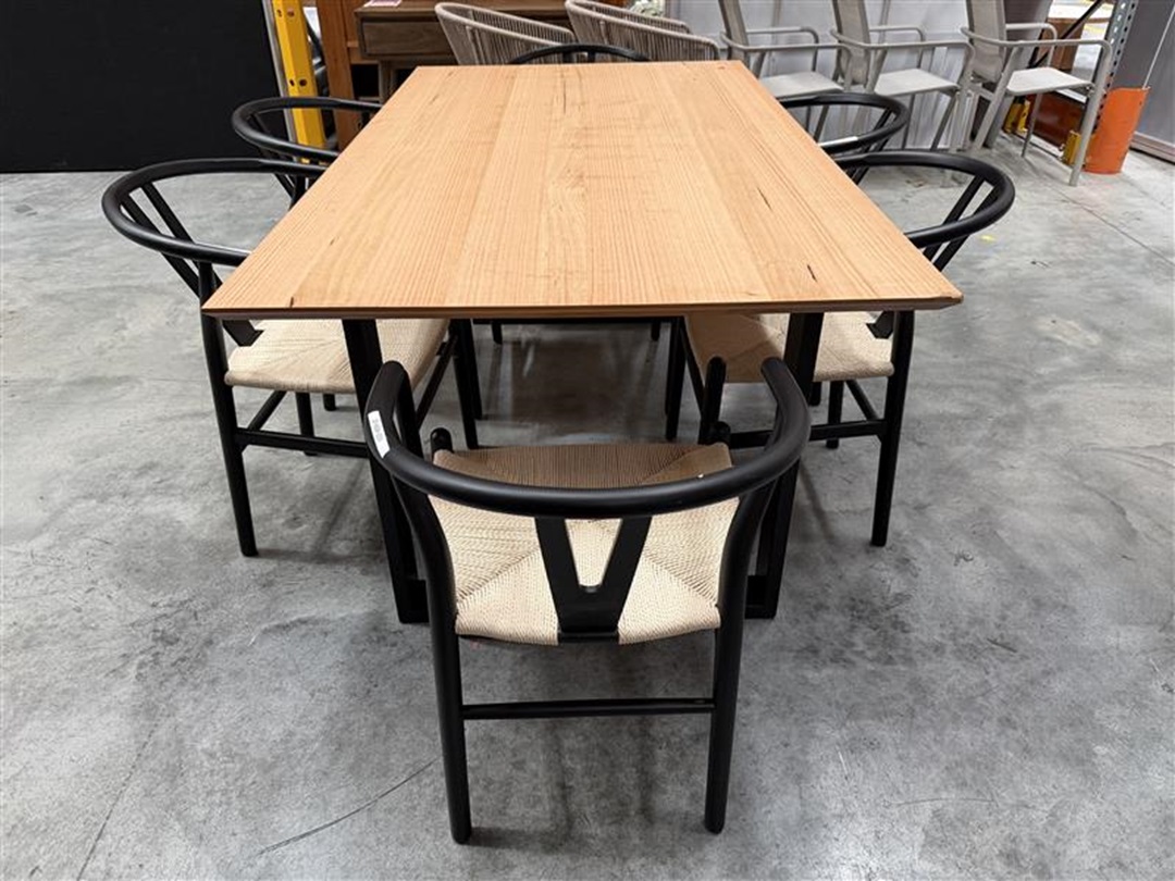 Natural Timber Top Dining Table with 6 Wishbone Chairs Setting