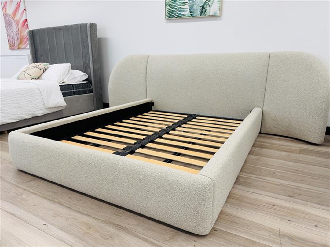 Original price was: $3,000.00.$1,500.00Current price is: $1,500.00.This contemporary queen bed features soft oatmeal fabric upholstery and a beautifully extended headboard that creates a luxurious statement. Perfect for adding comfort and sophistication to any modern bedroom.