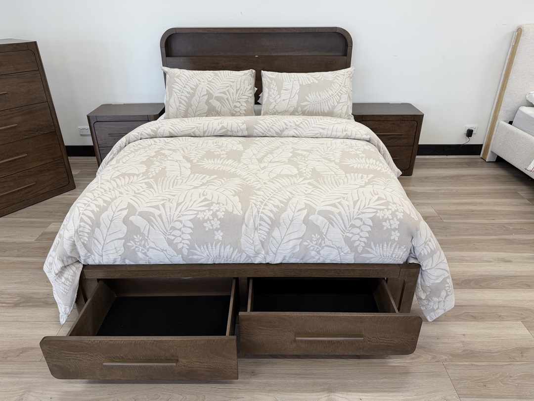 Mocca Acacia Timber 4pc Queen Storage Bed Tallboy Suite