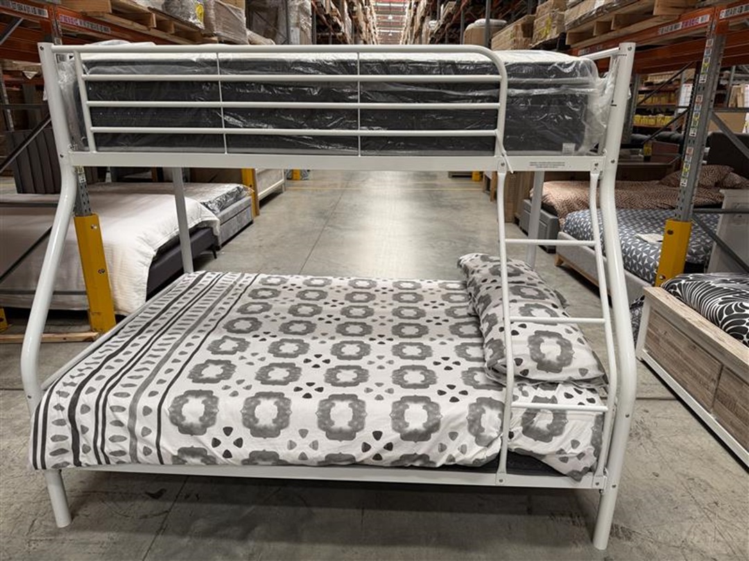 A durable white metal bunk bed with a single over double design that maximises space, offers strong support, and provides a clean modern sleeping solution.