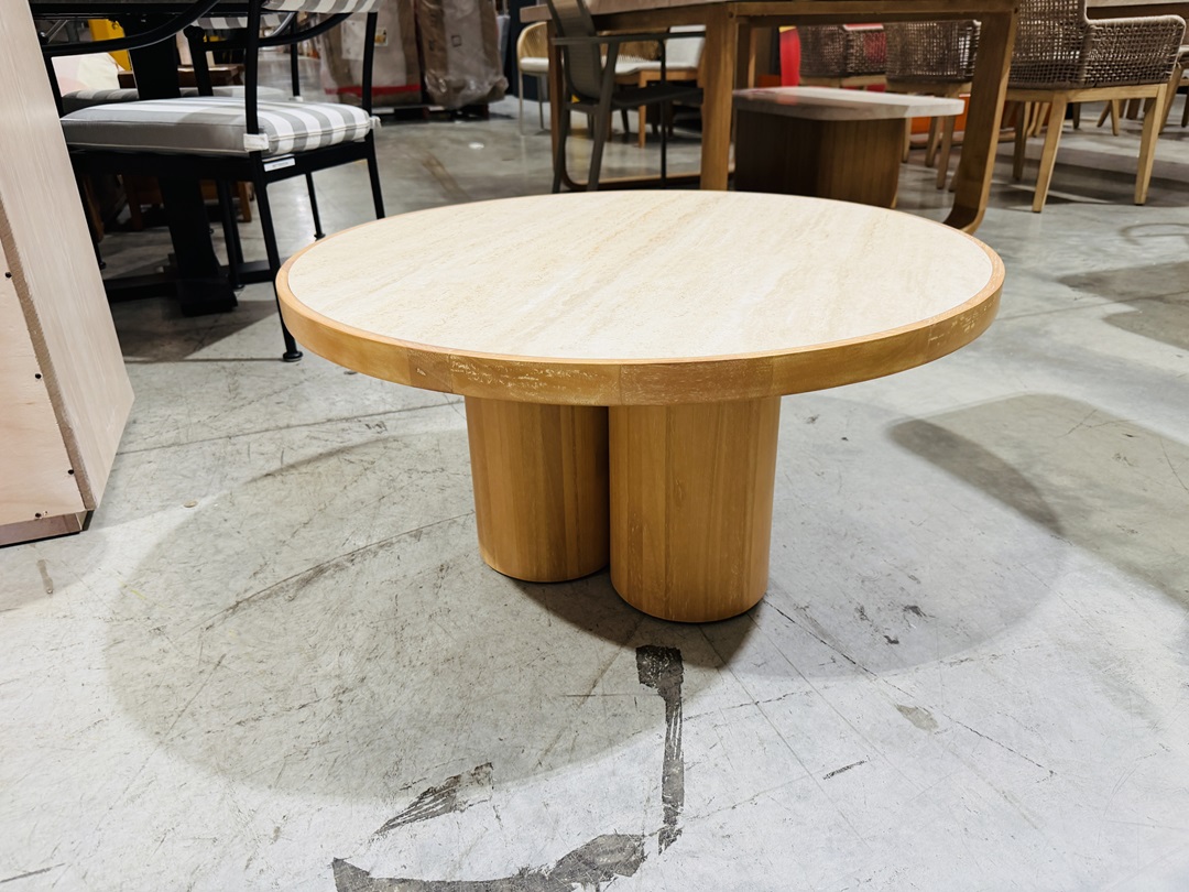 Stone Top & Timber Round Outdoor Coffee Table