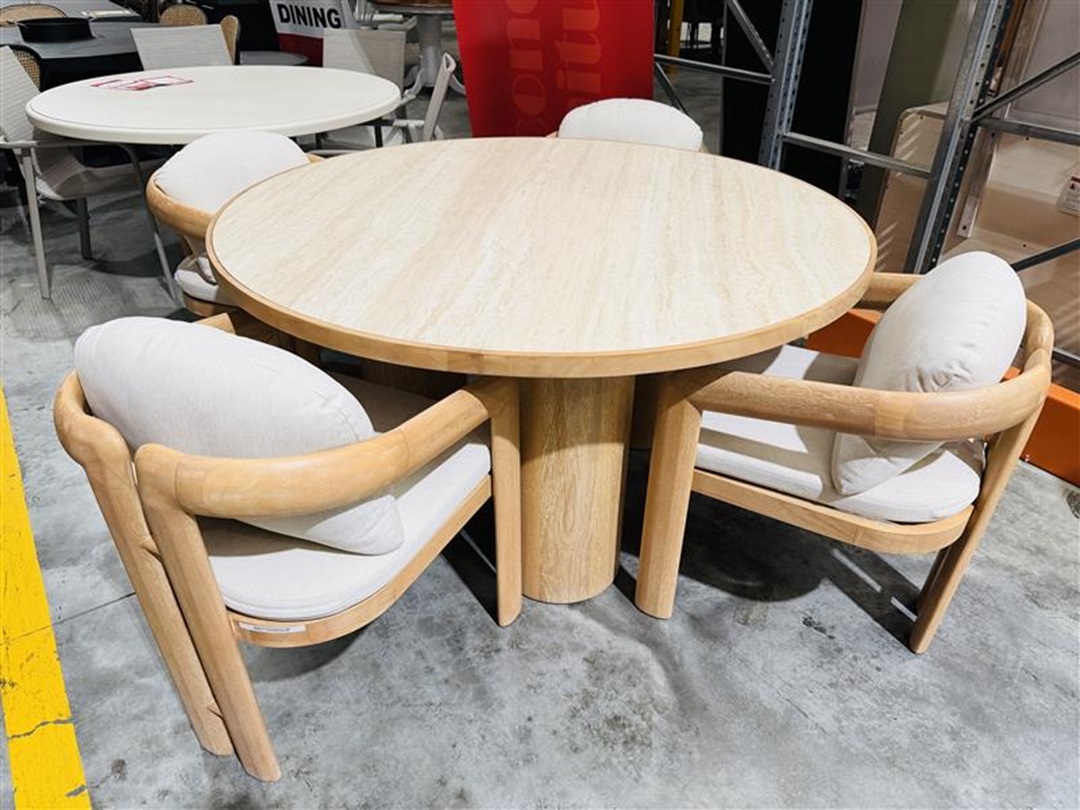 Stone Top & Timber Round Outdoor Table with 4 Outdoor Dining Chairs