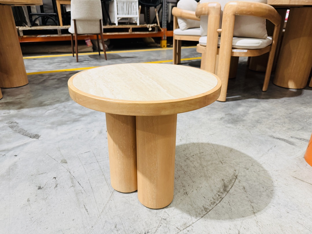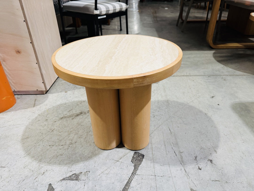 Stone Top & Timber Round Side Table