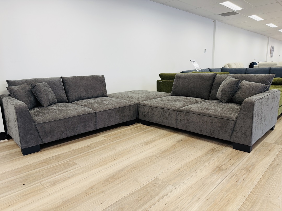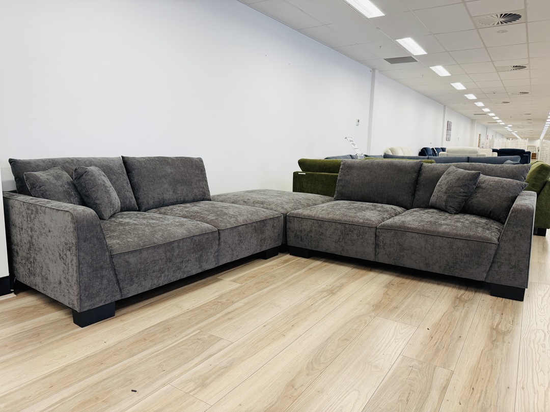 Charcoal Fabric 4 Seater Sofa with Ottoman