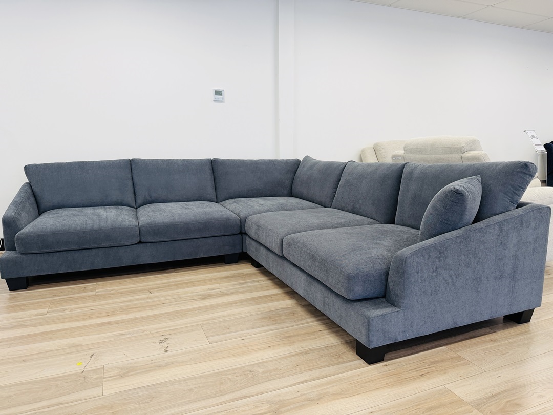 Original price was: $4,300.00.$2,195.00Current price is: $2,195.00.A striking 4-seater corner sofa finished in deep midnight blue fabric. Provides generous seating and a modern design, making it a standout piece for any living space.