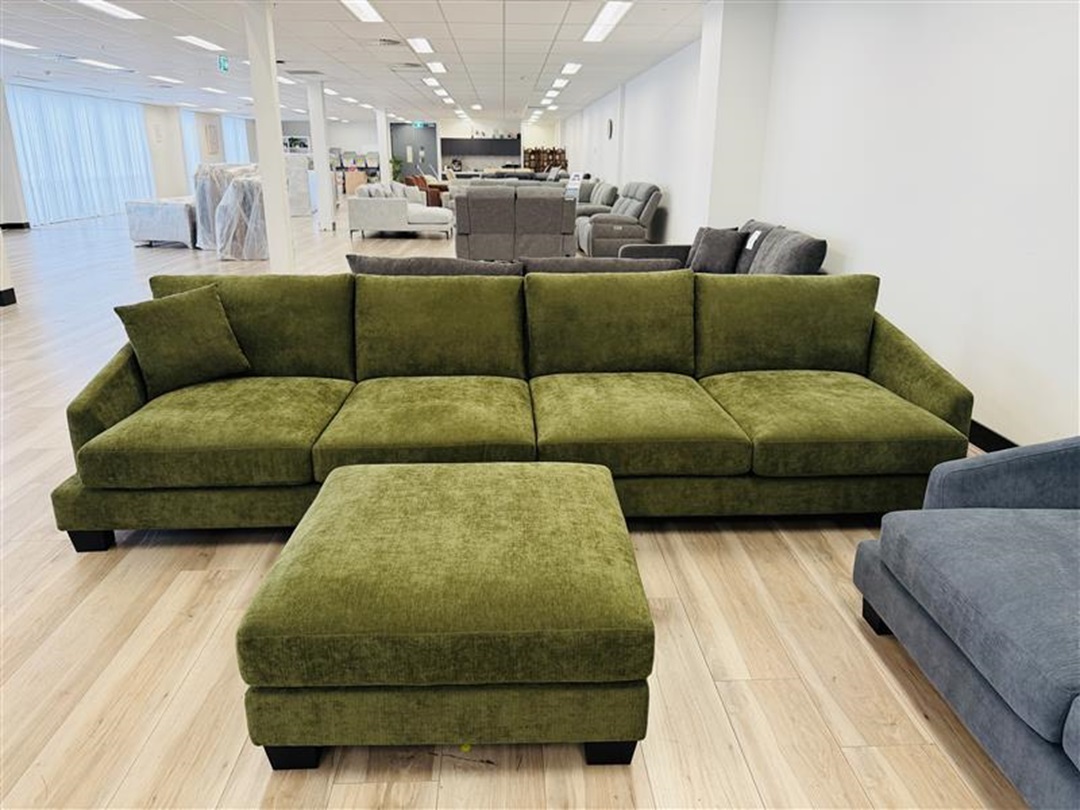 Olive Green Fabric 4 Seater Sofa with Ottoman