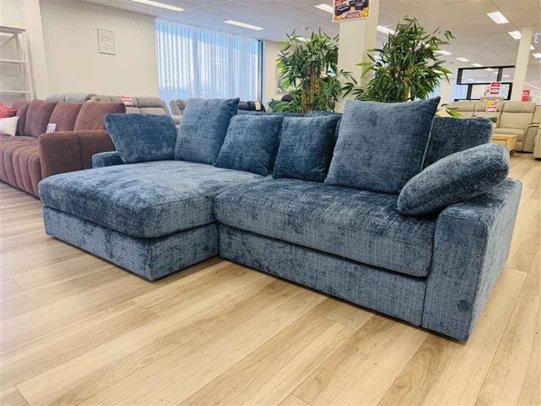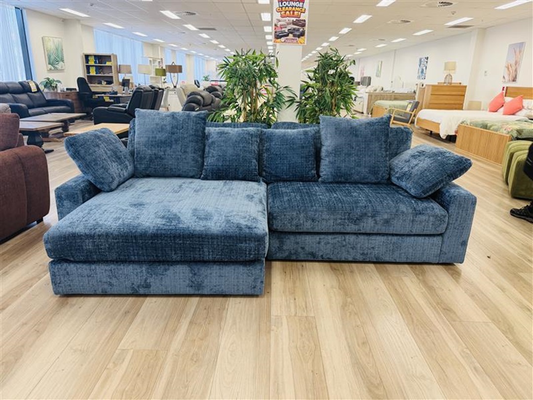 Blue Fabric 2 Seater with Chaise Sofa