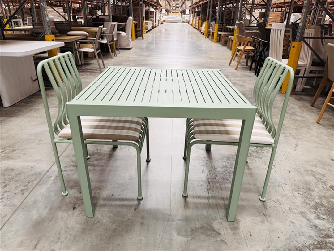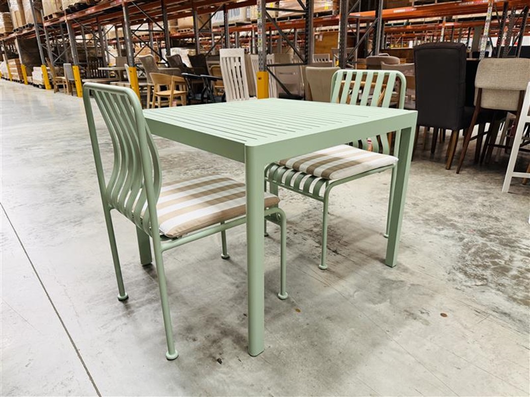 Original price was: $990.00.$495.00Current price is: $495.00.A compact and stylish 3-piece outdoor dining set crafted with a durable green aluminium frame. Perfect for balconies or small outdoor spaces, combining practicality with modern design.