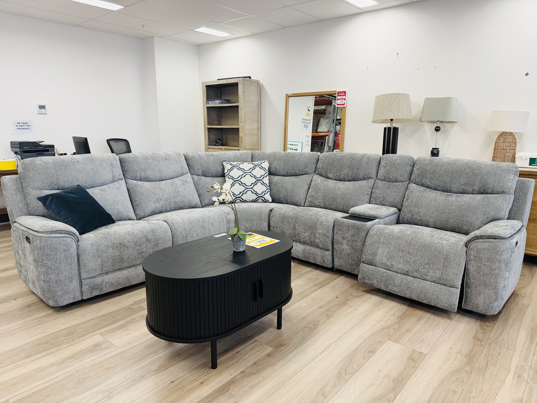 Grey Fabric Corner Modular with Electric Recliners & Storage