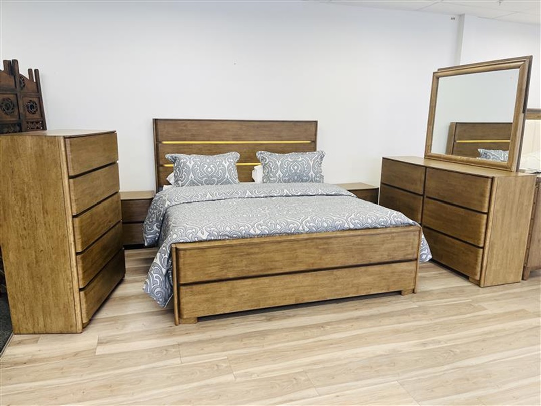 Golden Oak Timber 5pc King Bedroom Suite with Lights