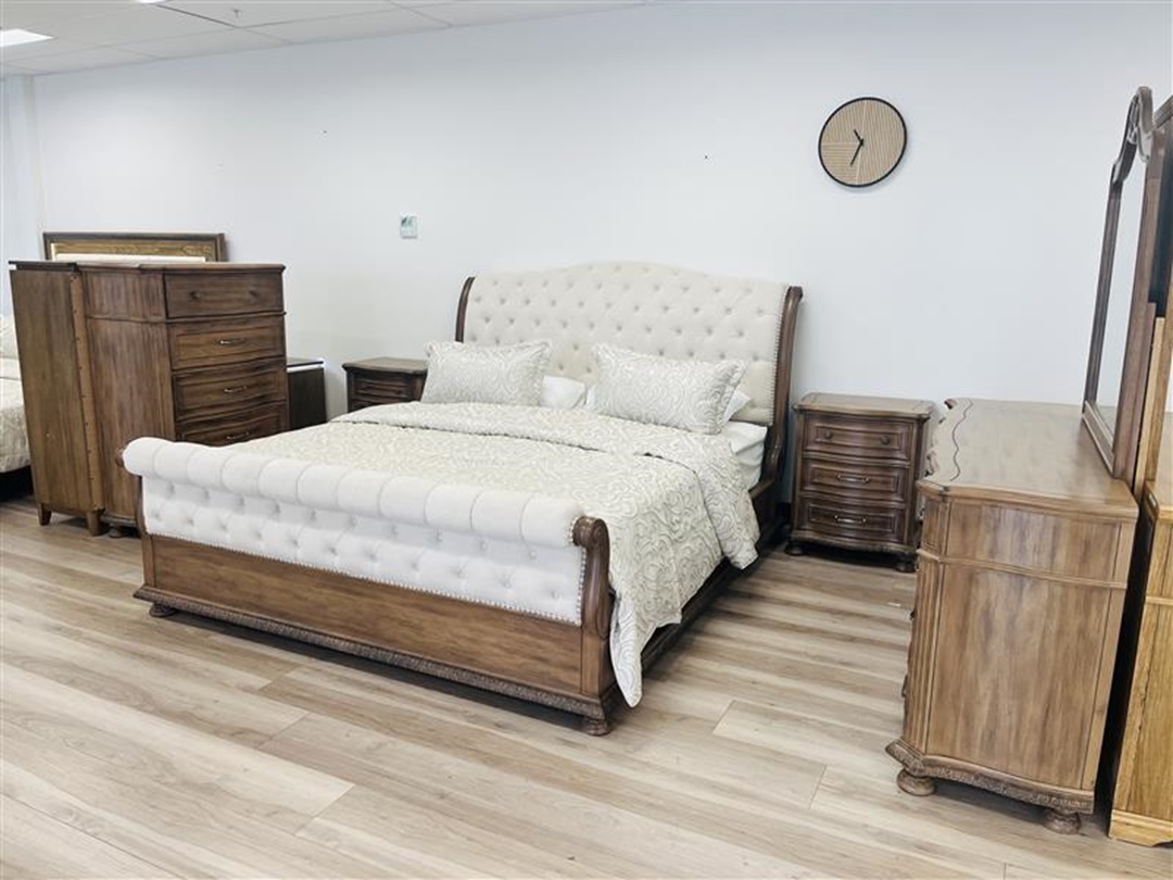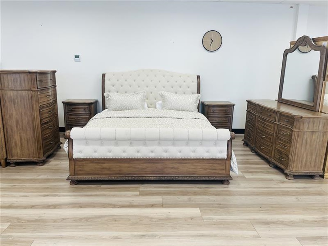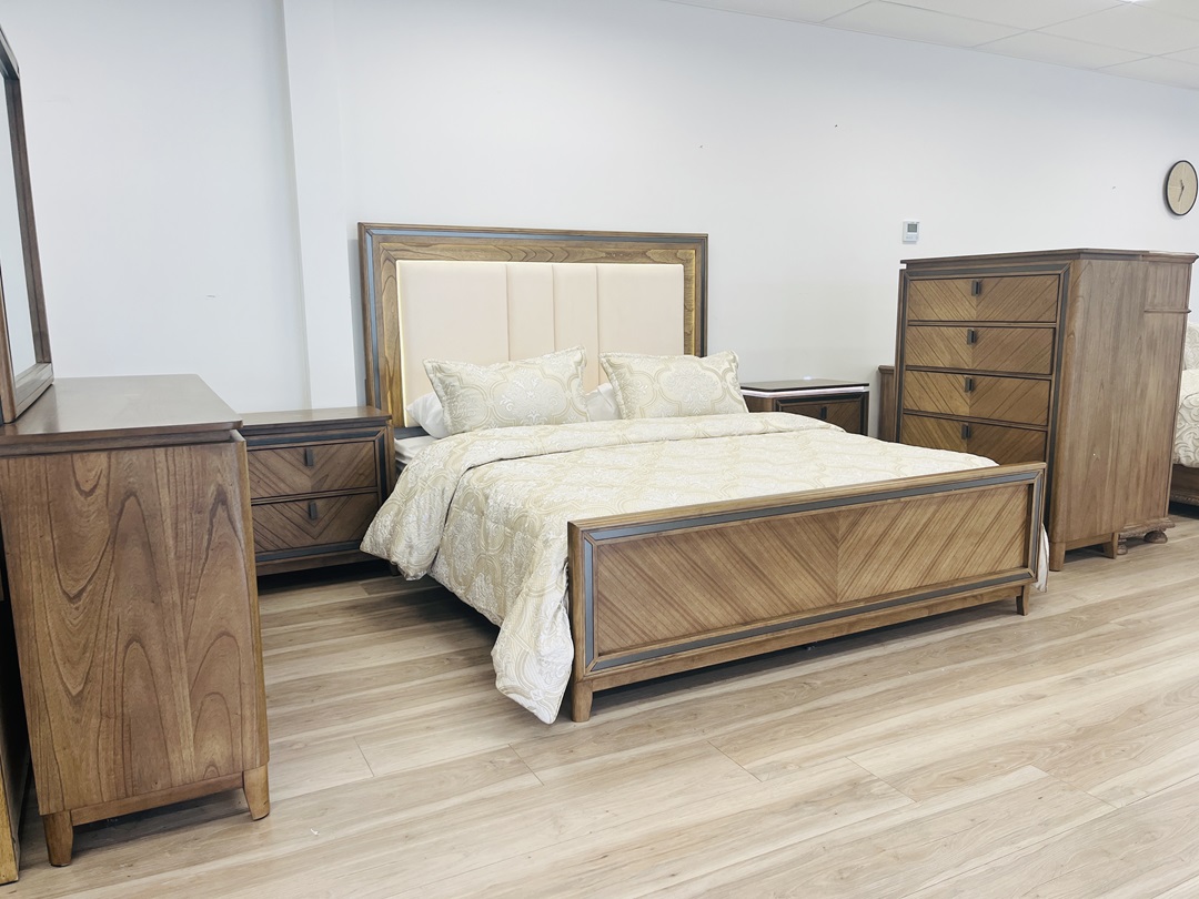 Mocca Timber 5pc King Bedroom Suite with Fabric Headboard & Footboard