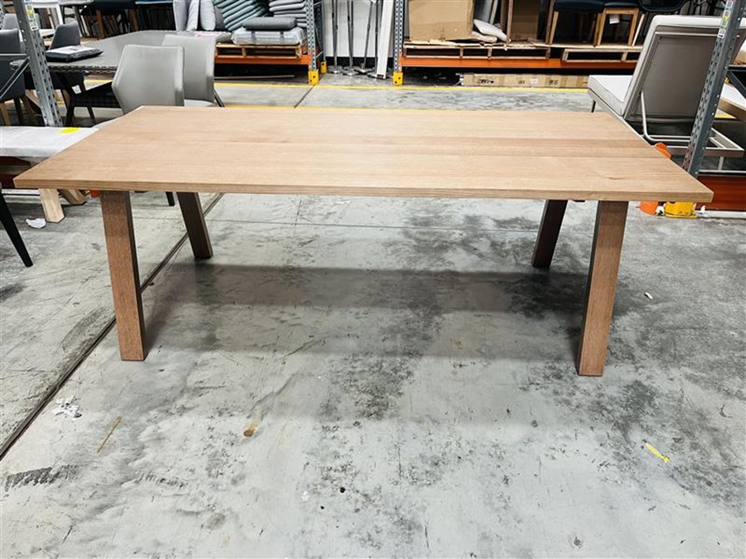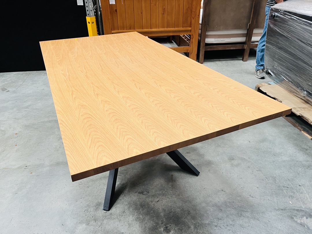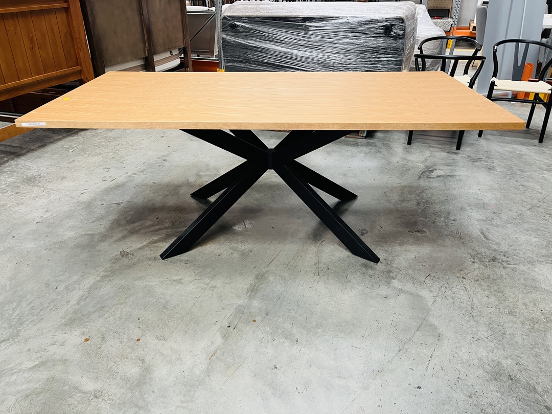 Featuring a solid timber top and strong black metal legs, this 200cm table blends industrial and rustic charm. Its spacious design comfortably seats family and guests. A durable and stylish centerpiece for any dining space.