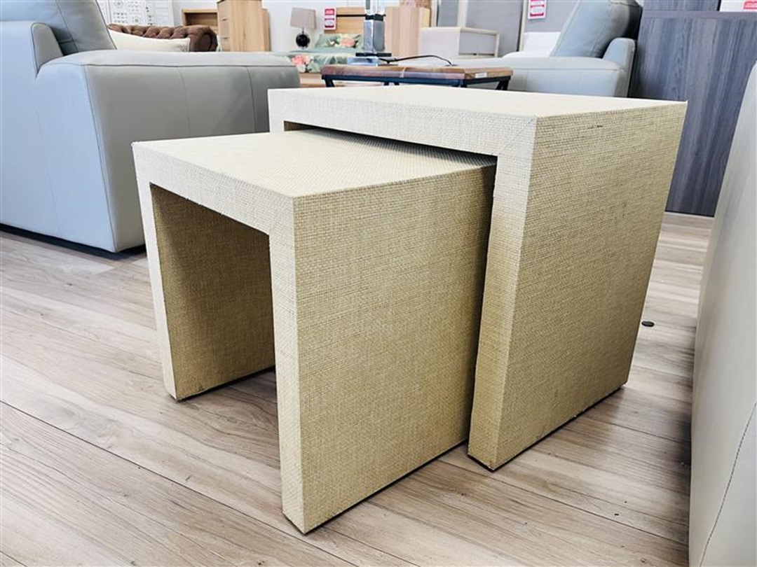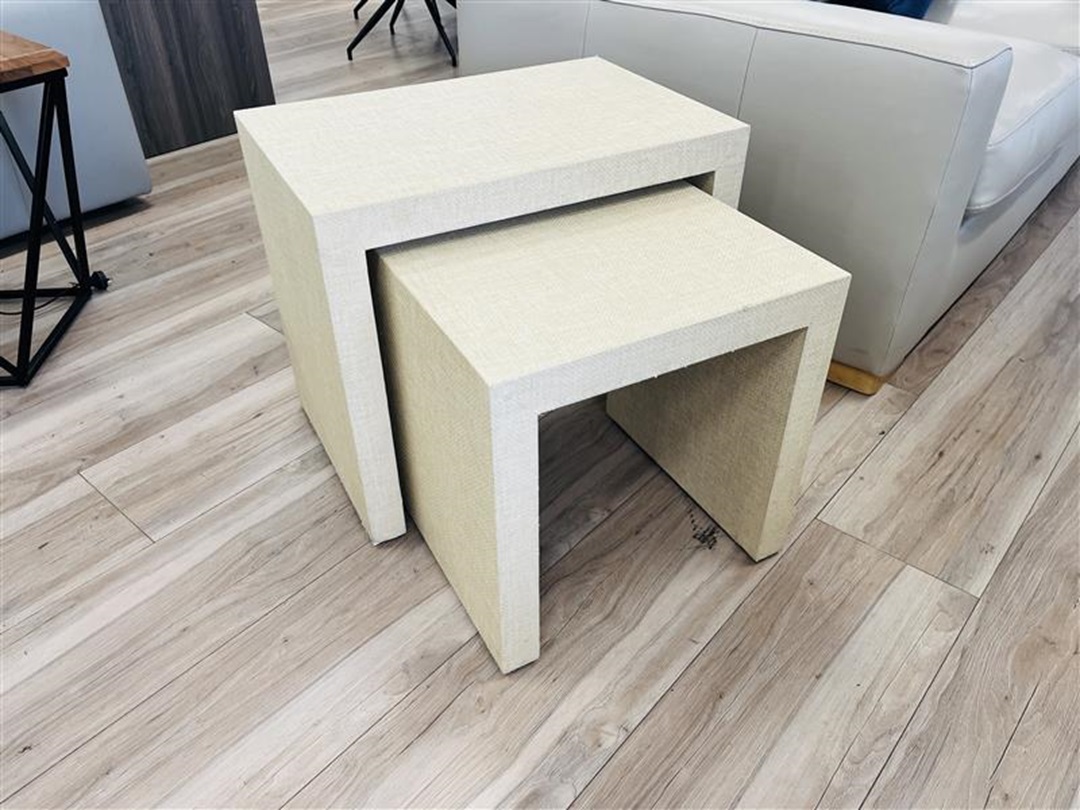 This elegant 2-piece nesting table set in beige offers versatility and style. The compact design allows easy storage when not in use. Perfect for modern living spaces or as side tables for entertaining.