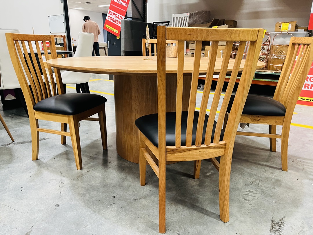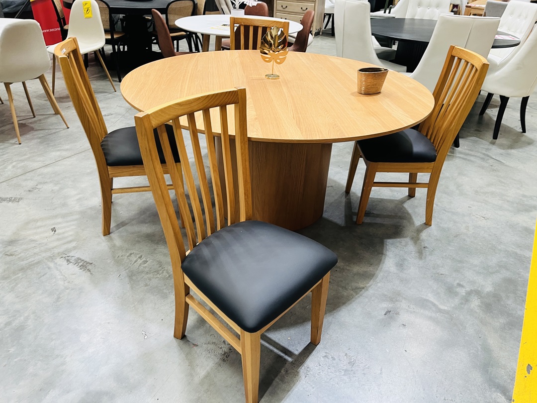 This 5-piece dining set includes a round timber table and four matching chairs. Crafted from natural wood, it brings warmth and charm to your dining area. Ideal for family meals or relaxed gatherings.