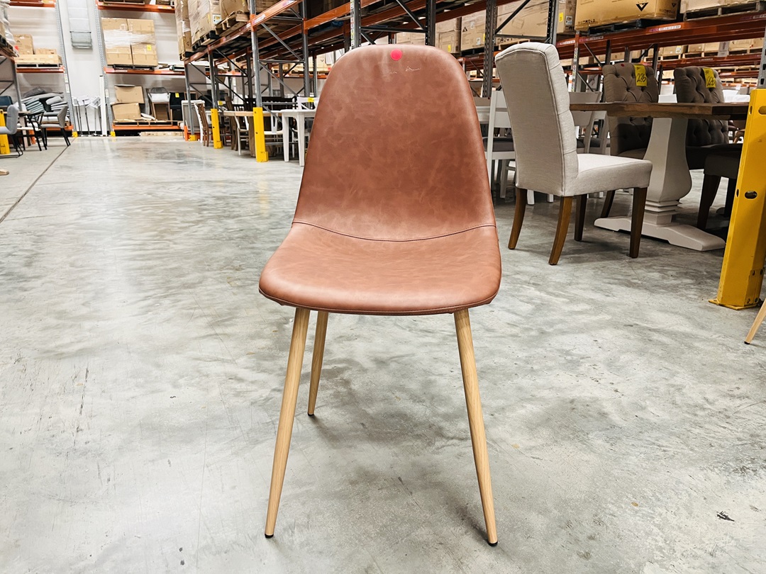Combining comfort and simplicity, this dining chair features smooth tan PU upholstery and natural timber legs. The neutral tones fit effortlessly with various dining styles. Easy to clean and durable for everyday use.