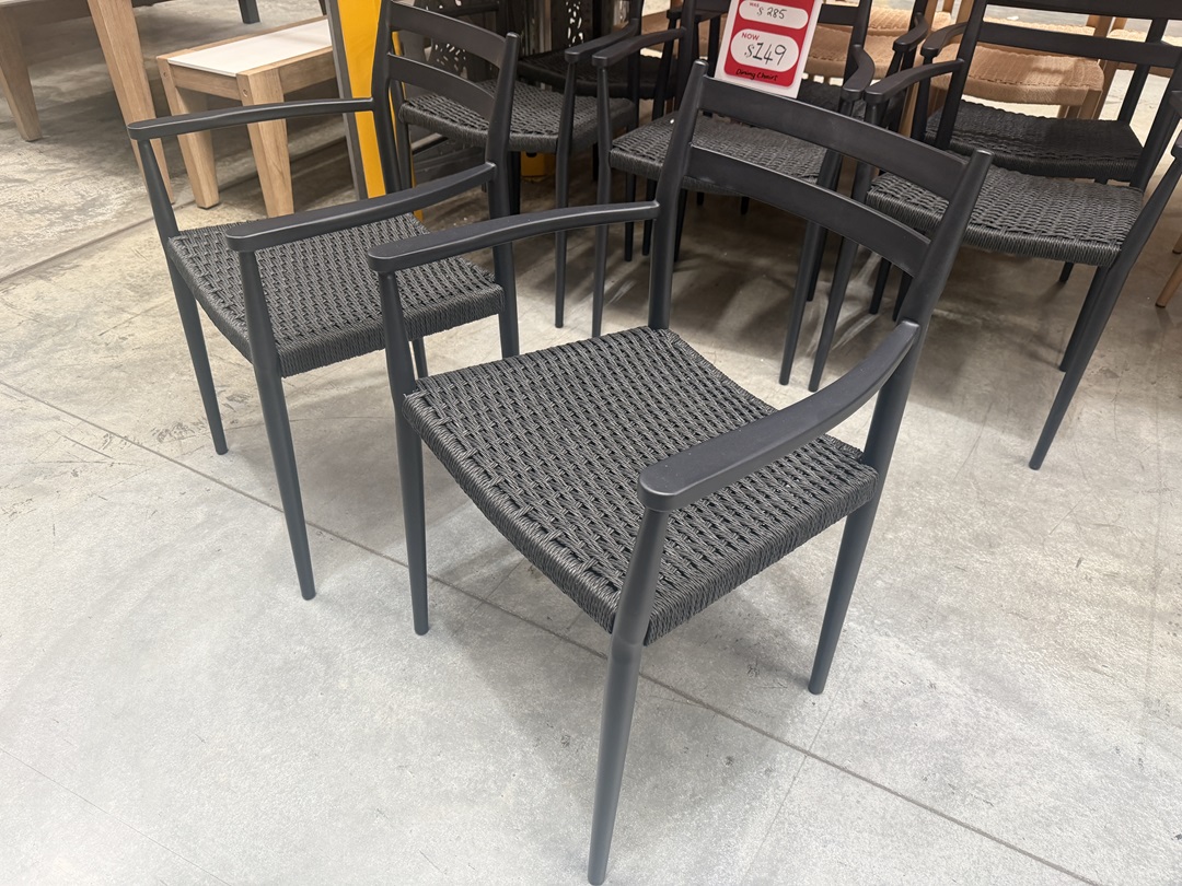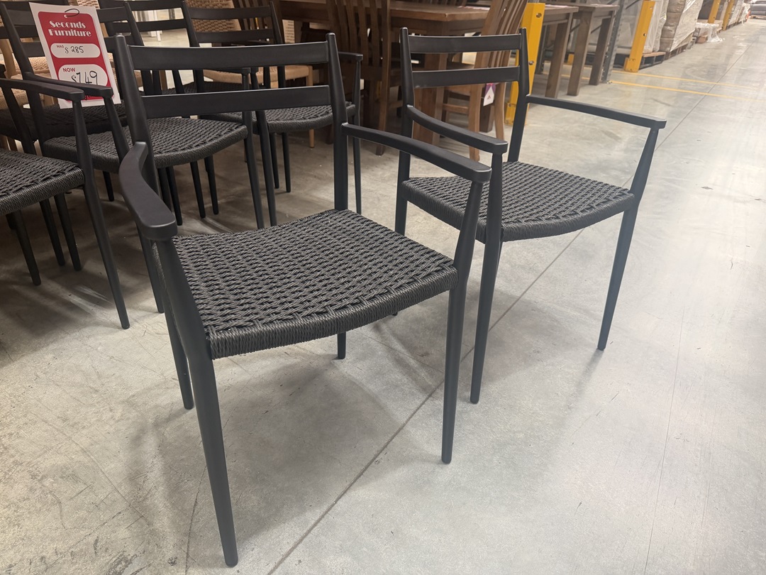 This contemporary dining chair combines a sleek black woven design with a strong metal frame. Offers excellent support and a modern aesthetic. Ideal for adding bold style to any dining room setting.