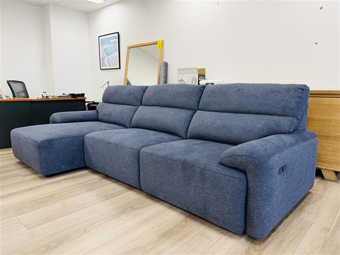 A modern electric chaise sofa upholstered in deep dark blue fabric, offering both visual impact and exceptional comfort. The electric recline function ensures effortless relaxation with a sleek, contemporary finish.