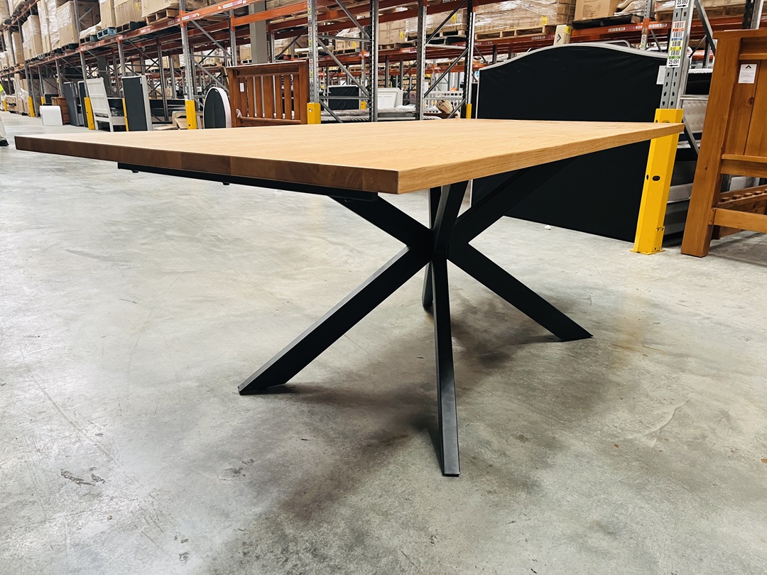 Featuring a solid timber top and strong black metal legs, this 200cm table blends industrial and rustic charm. Its spacious design comfortably seats family and guests. A durable and stylish centerpiece for any dining space.