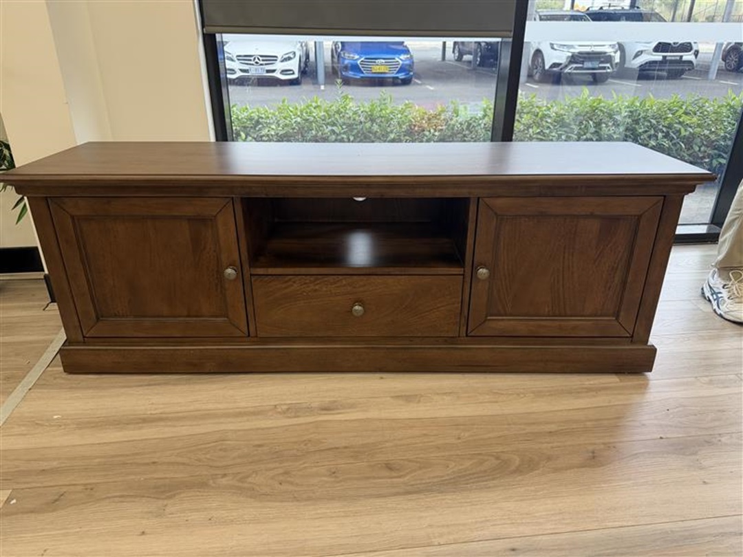 Sophisticated walnut timber TV unit with four drawers and two doors, combining classic style with practical storage solutions.