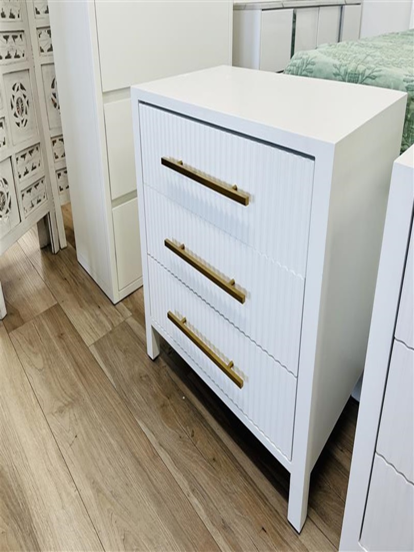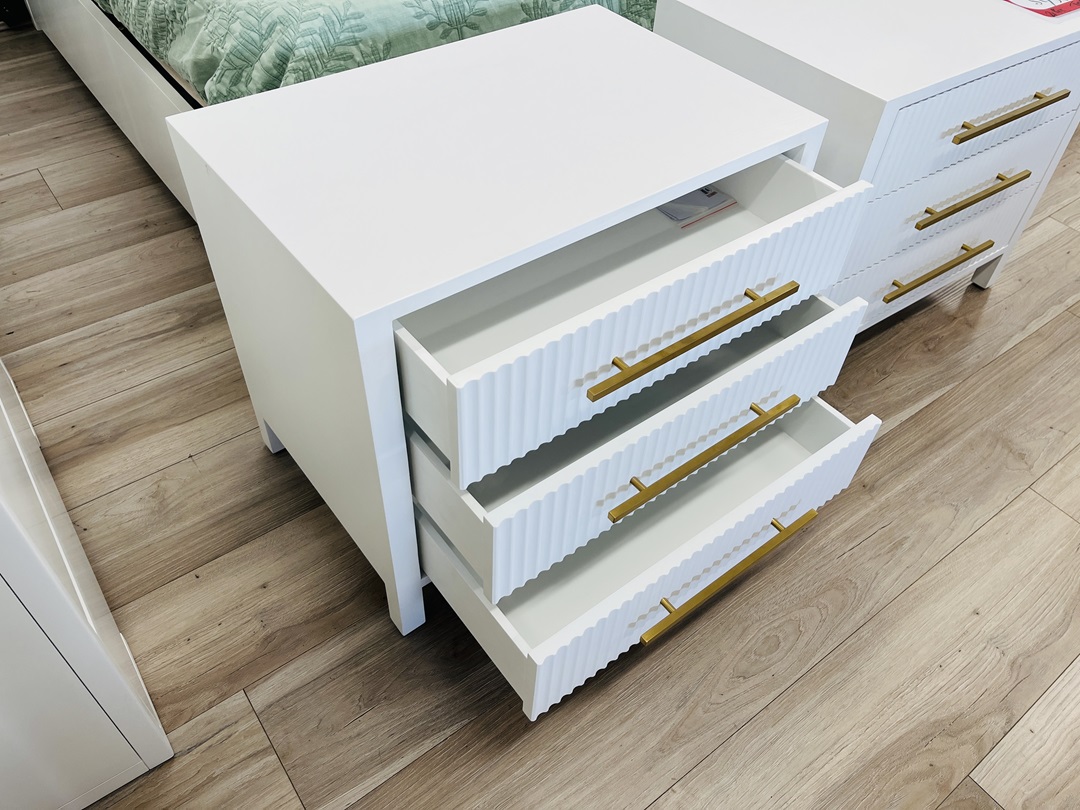 Crafted from premium timber, this bedside exudes elegance and durability. The three spacious drawers provide ample storage for bedroom essentials. Finished with gold handles, it adds a touch of luxury to your space.