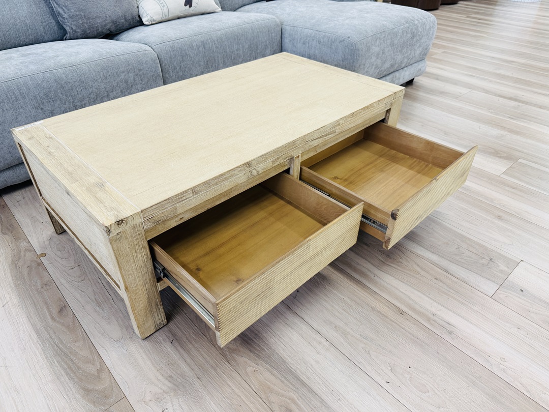 A stylish and practical coffee table made from ash timber. With two convenient drawers for storage and a spacious tabletop, it offers both functionality and natural elegance for your living room.