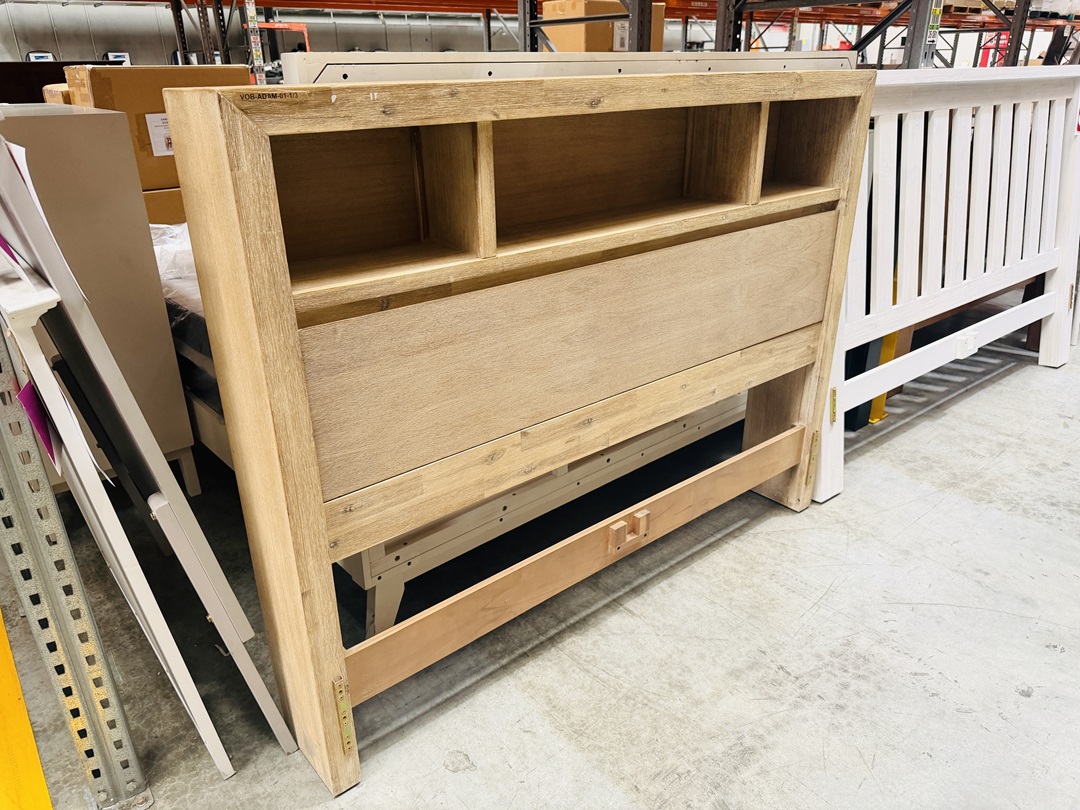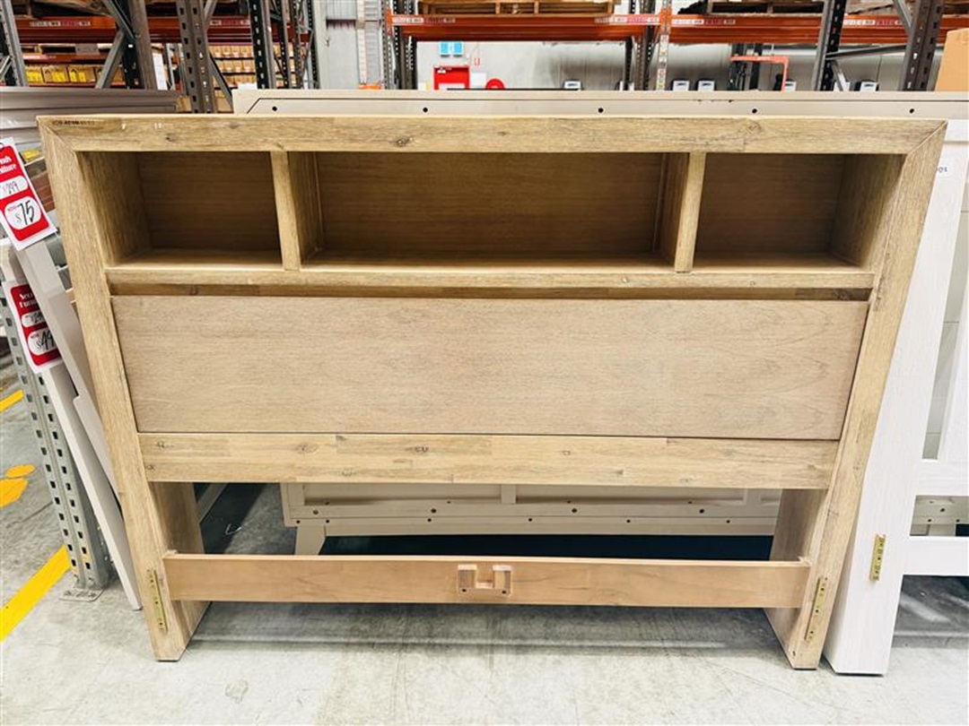 A functional and stylish queen headboard crafted from ash timber. Featuring built-in shelves for convenient storage and display, it combines practicality with a clean, modern design.
