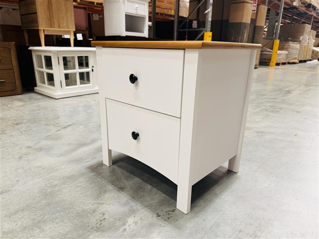 Beautifully crafted from white timber, this bedside table features a unique curved design for a contemporary touch. It includes one smooth-gliding drawer for convenient storage. A stylish companion to any modern or classic bed setting.