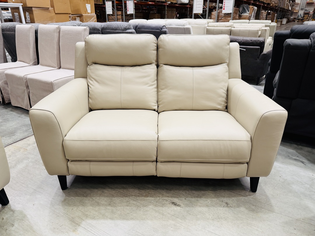 A pewter leather dual-motor recliner set with independent footrest and backrest control, delivering comfort, durability, and easy maintenance.