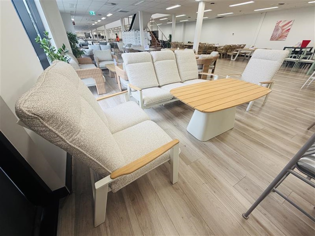 Beige & White 4pc Outdoor Sofa Set with Reclining Chairs