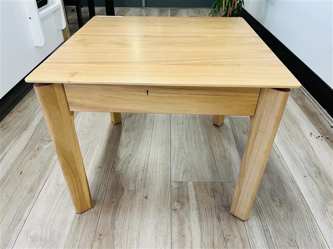 A compact and versatile lamp table with a single drawer for storage. Its square design makes it a practical addition to any living space or bedroom.