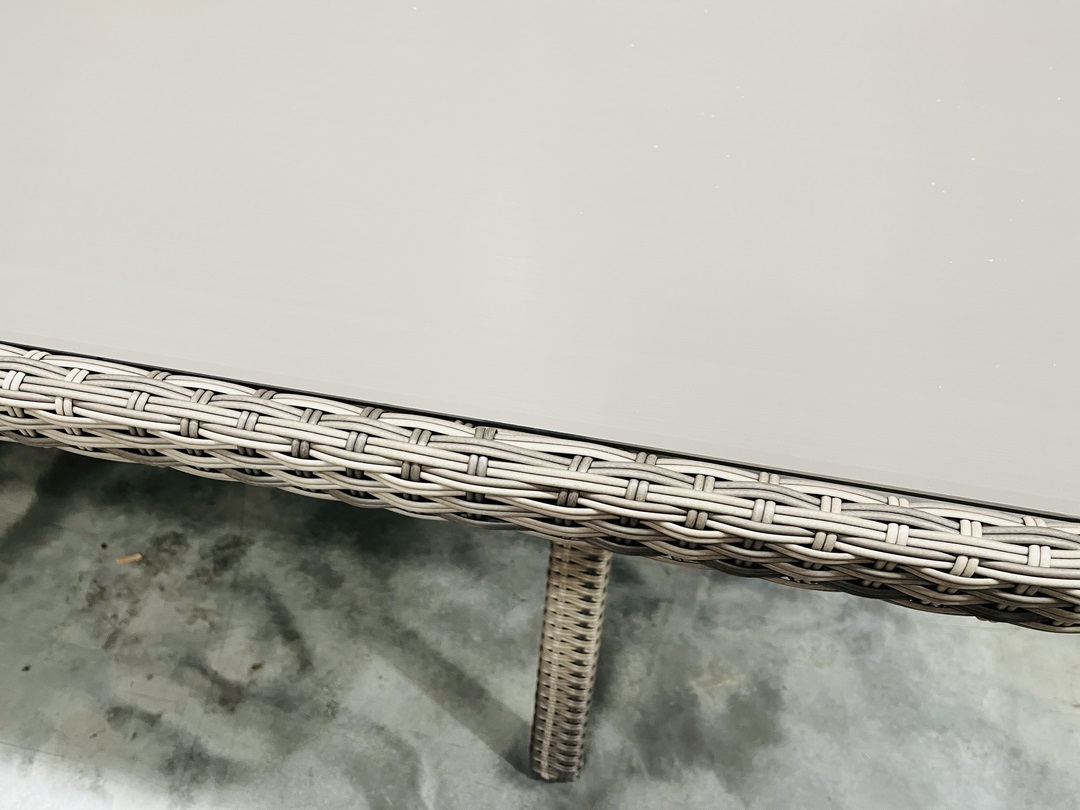 Designed for outdoor living, this dining table features a sturdy brown wicker base and a tempered glass top. Weather-resistant and easy to maintain, it’s ideal for patios and gardens. Perfect for alfresco dining and relaxation.