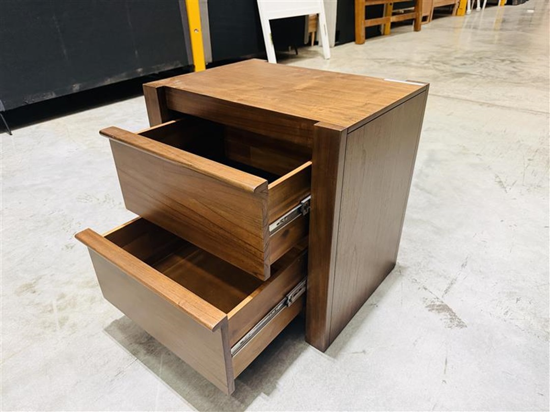 Crafted in rich brunette timber tones, this bedside table offers a warm and timeless look for any bedroom. Featuring two spacious drawers with smooth-glide functionality, it provides convenient storage for nighttime essentials while maintaining a clean and elegant design.