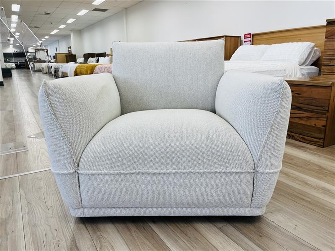 A soft and inviting armchair upholstered in snow-white plush fabric. Designed with deep cushioning and gentle curves, it’s perfect for creating a cozy reading or relaxation corner.