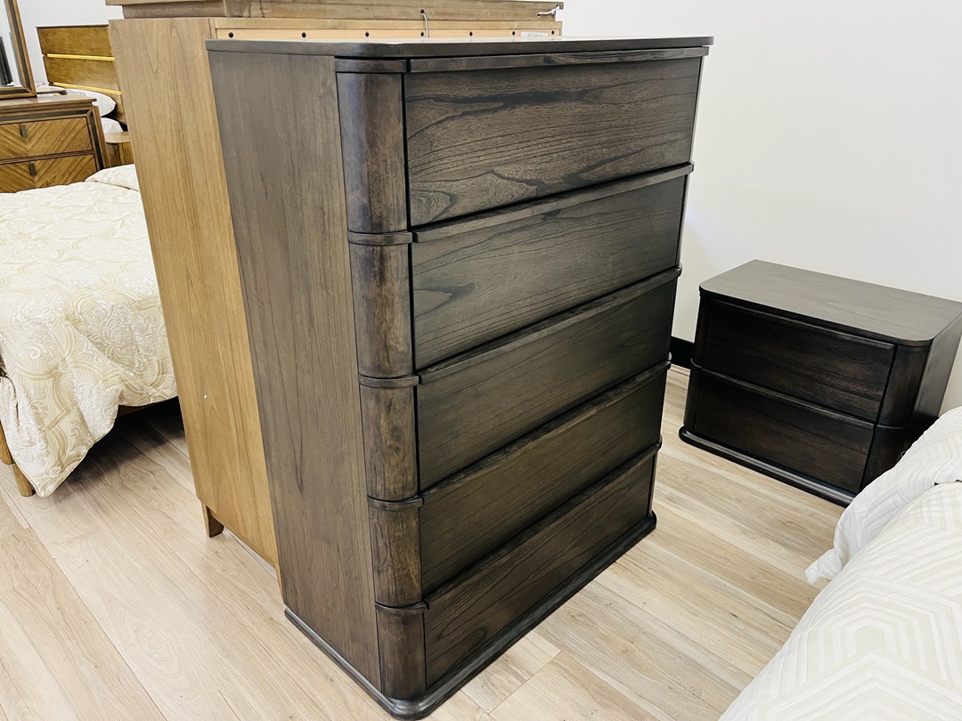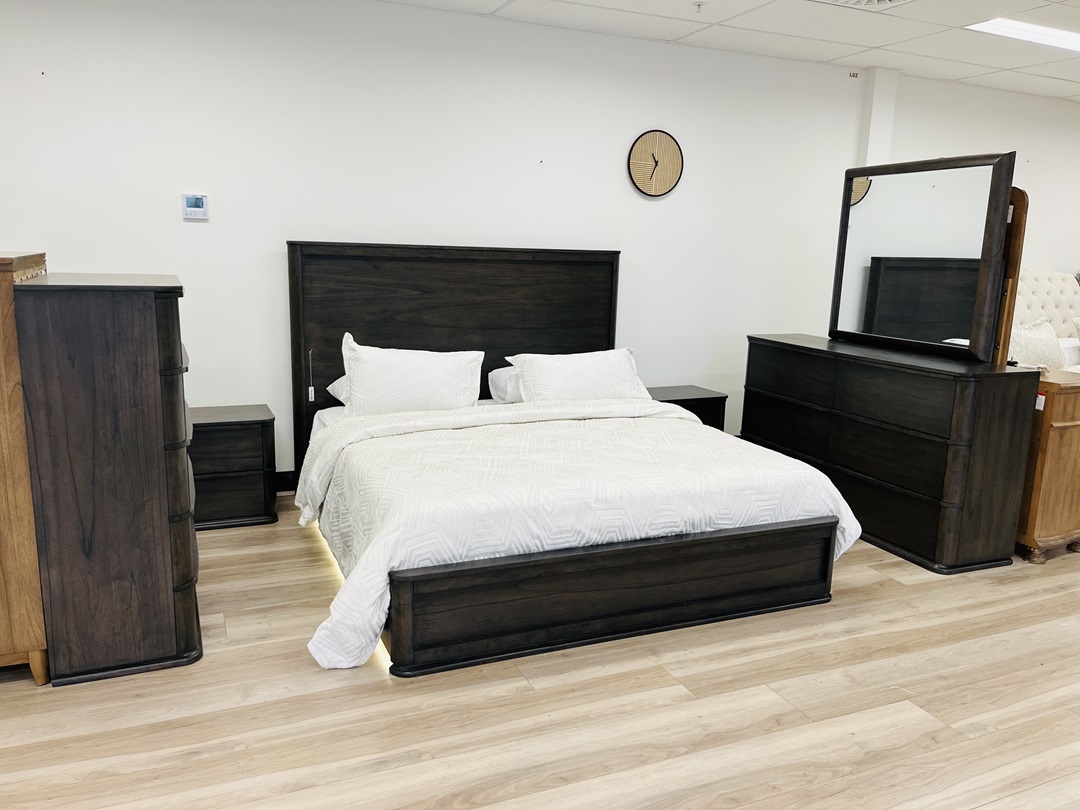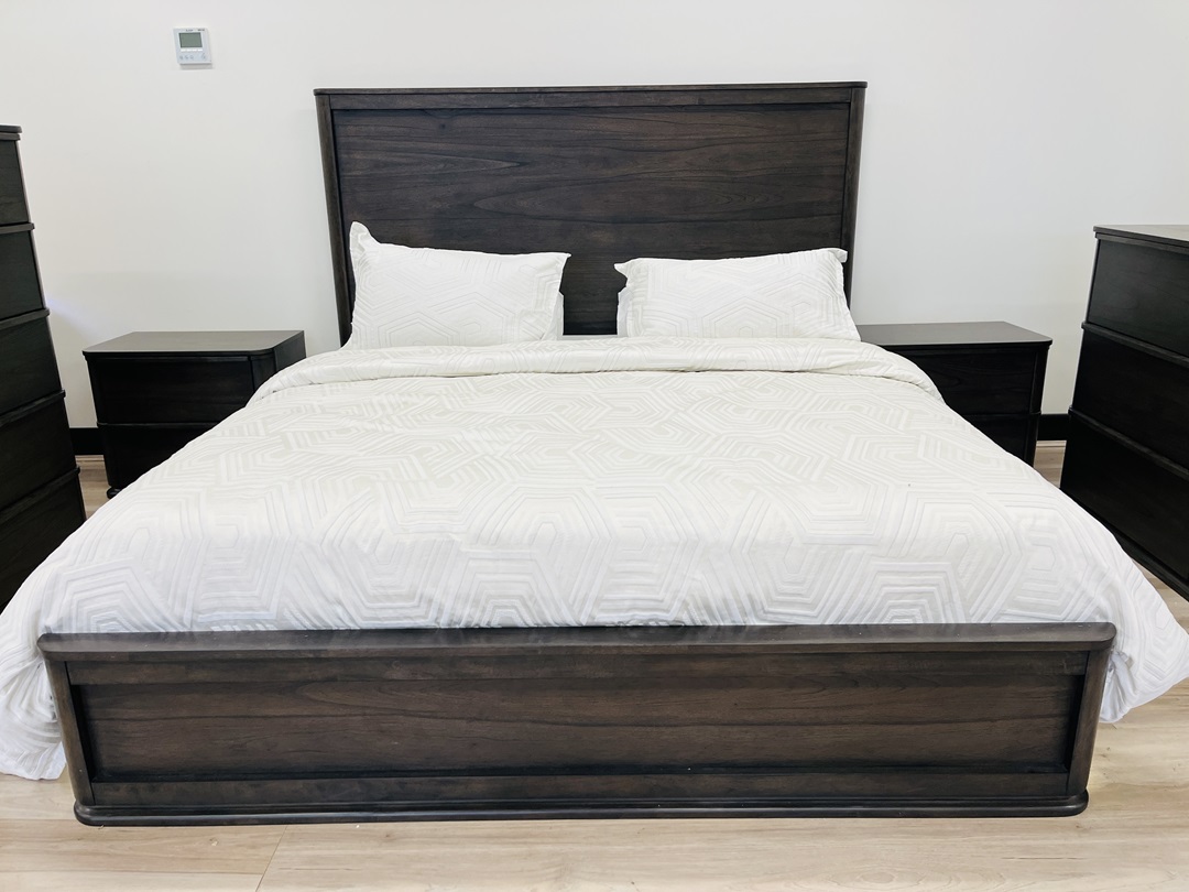This luxurious 5-piece king suite features a bold dark chocolate timber finish. The set includes a king bed, tallboy, dresser, and bedside tables for complete coordination. Elegant, sturdy, and designed for modern sophistication.