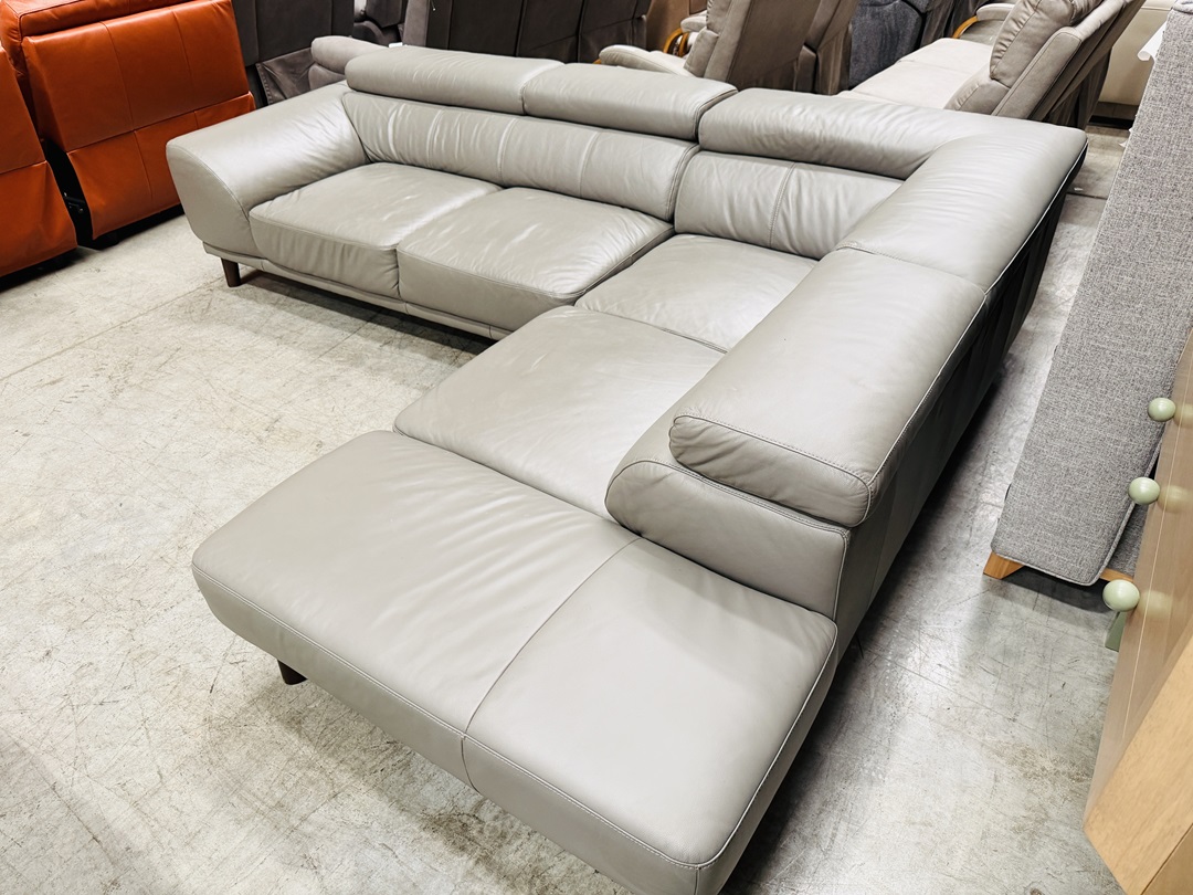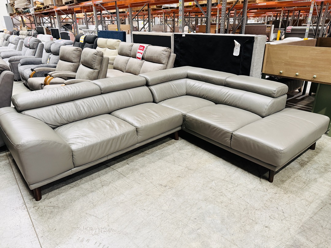 The Dark Grey Leather Corner Lounge with Adjustable Headrests features premium leather upholstery and adjustable headrests, delivering both modern style and personalised comfort for larger living areas.