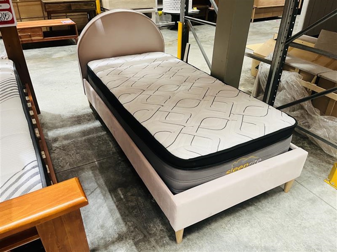 A comfortable and stylish king single bed upholstered in grey fabric—ideal for kids, teens, or guest rooms.