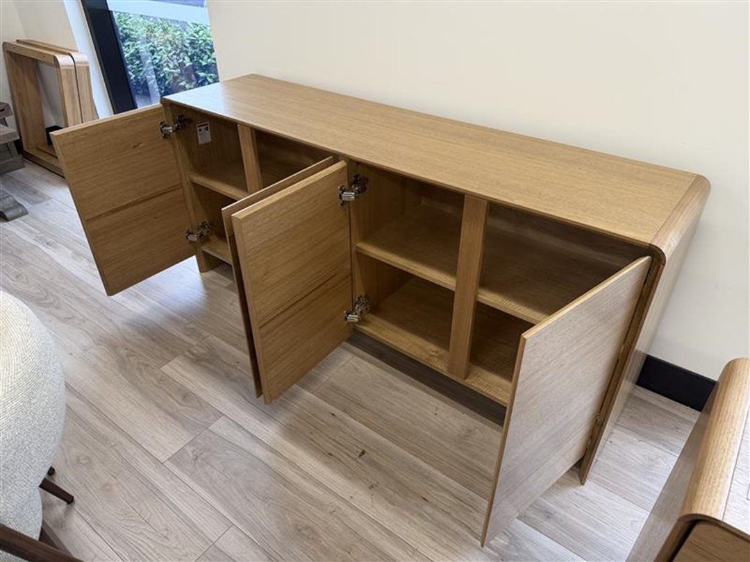 A generously sized buffet featuring four doors for organised storage. Made from premium golden oak timber that highlights natural wood tones. A perfect statement piece for dining or living spaces.