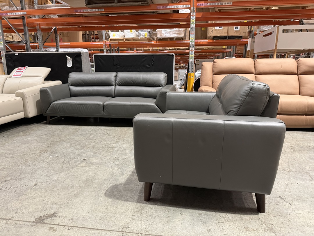 A modern 3+2 sofa suite upholstered in premium graphite leather. Designed for comfort and durability, this elegant setting provides generous seating and a sophisticated look for any living room.