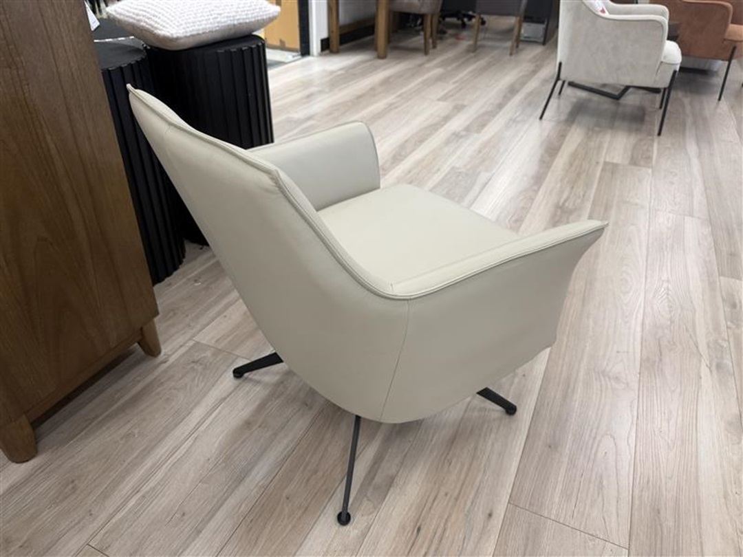 A stylish swivel chair upholstered in smooth light-beige leather. Offers 360-degree rotation with plush cushioning, perfect for living rooms, offices, or lounge spaces.