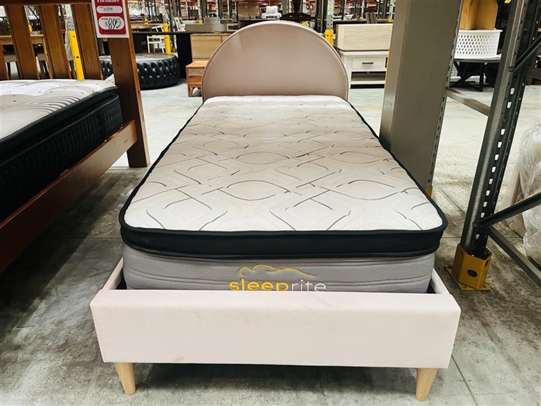 Delightfully soft and stylish, this light pink fabric bed is perfect for kids or guest rooms. It comes complete with a comfortable mattress for instant setup. A cozy and charming addition to any bedroom.