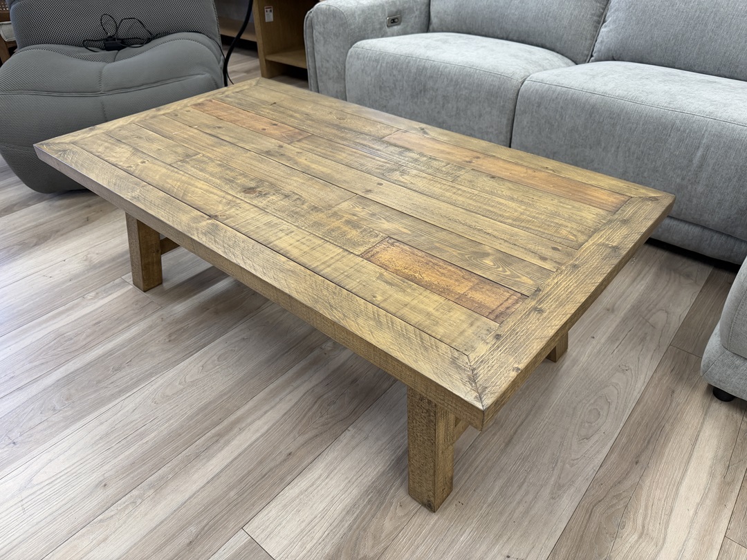 A beautifully crafted coffee table in a natural antique wash timber finish that highlights the wood’s character and adds warmth and rustic charm to any living space.