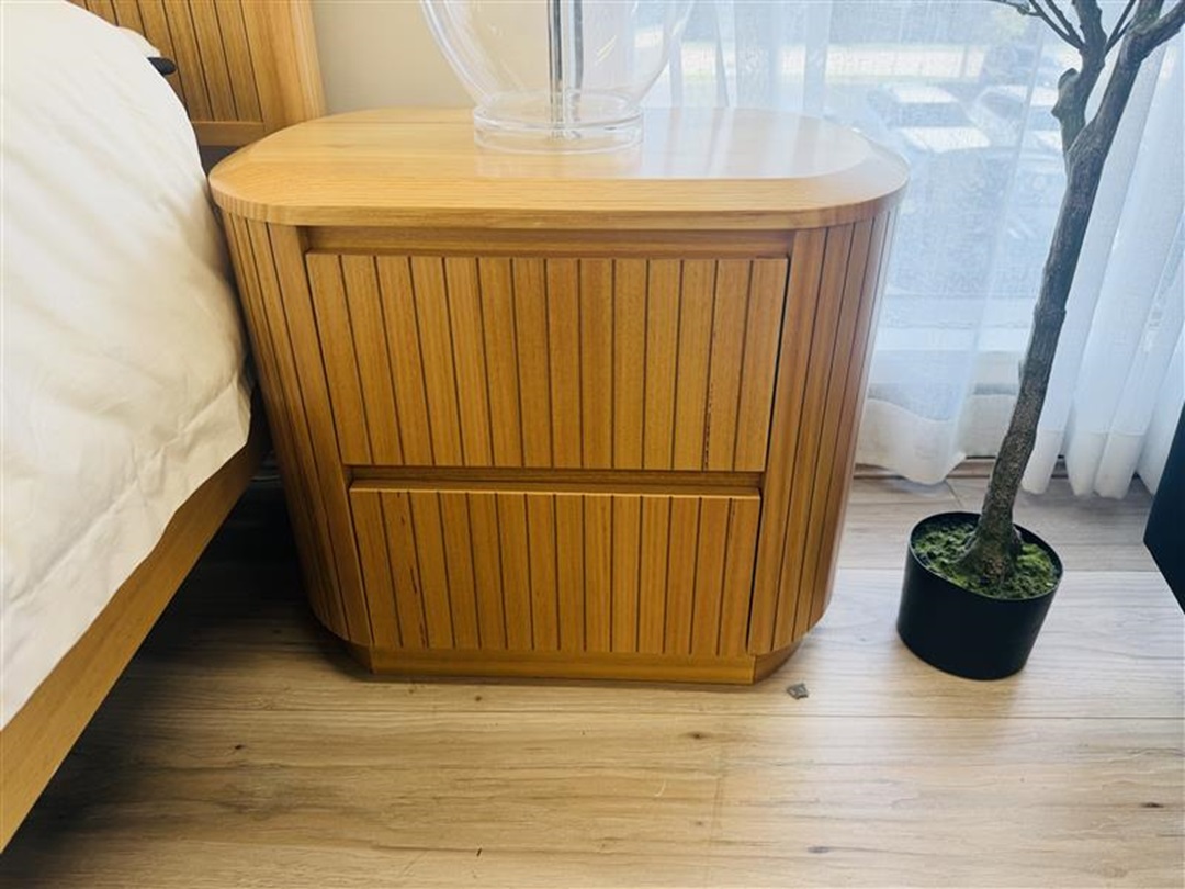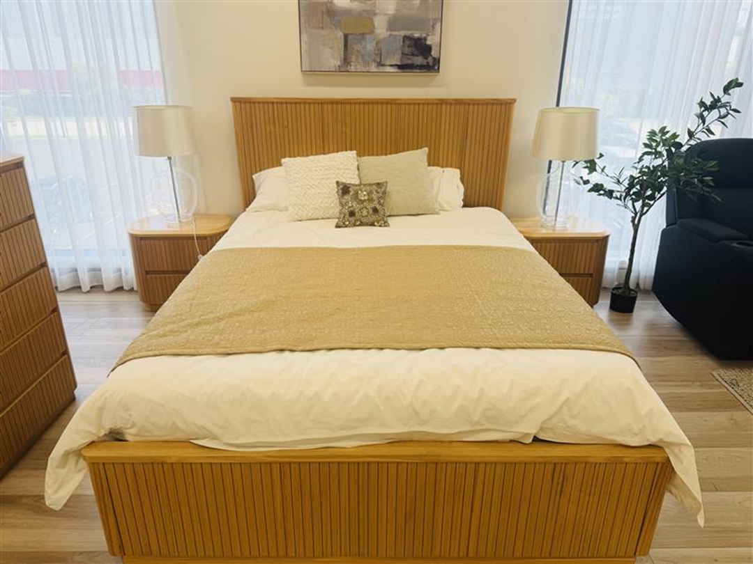 A beautifully coordinated 4-piece queen bedroom suite crafted in natural ash timber. Featuring matching furniture pieces with generous storage, this suite brings warmth, durability, and timeless style to your bedroom.