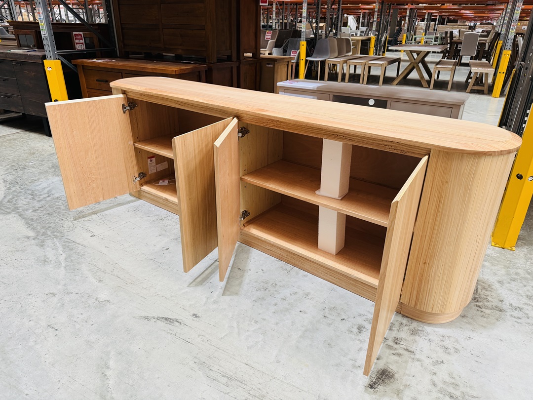 A spacious buffet crafted from natural timber with four doors. Provides ample storage for dining or living areas. Combines functionality with timeless natural style.
