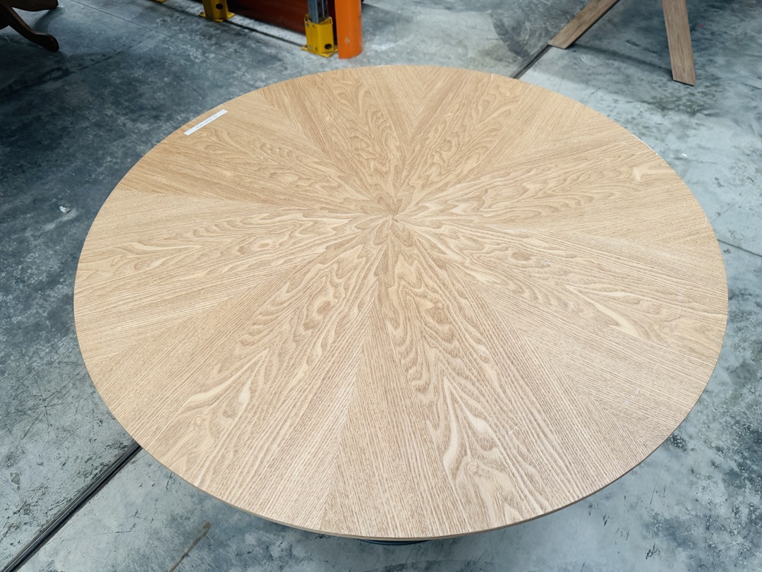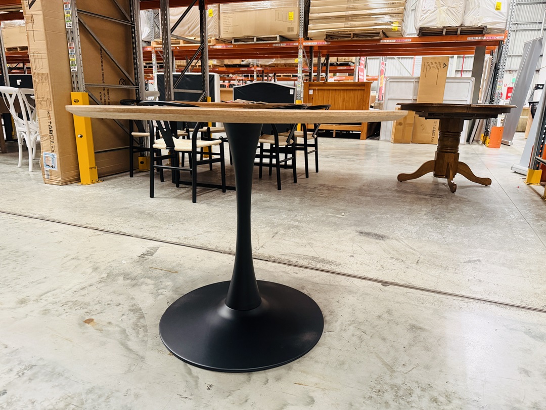 A compact and stylish round dining table with a natural timber top. Measuring 100cm, it’s ideal for smaller spaces while offering a warm and inviting dining experience.