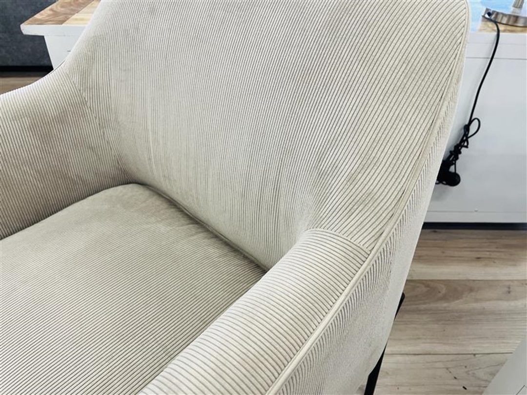 This armchair is upholstered in soft oatmeal fabric for a neutral, inviting look. Designed with comfort in mind, it suits both modern and traditional interiors. A versatile accent chair for any living space.