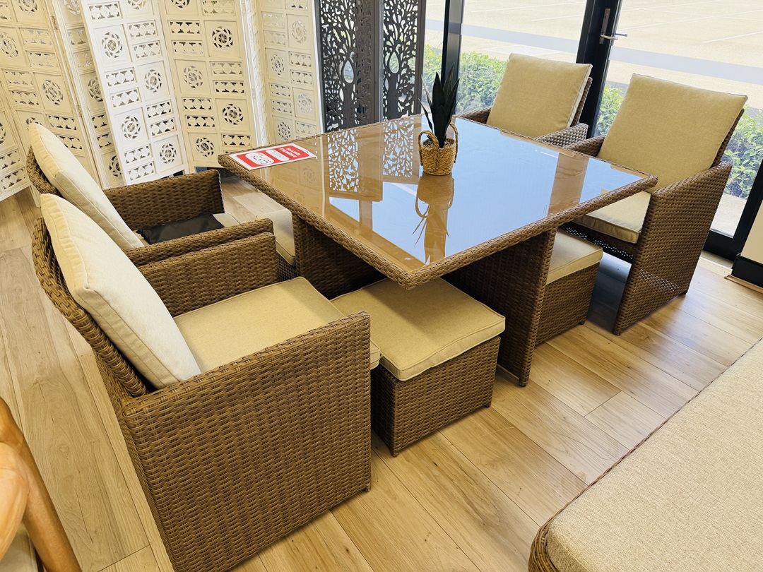 This outdoor sofa set combines natural timber frames with stylish rope detailing to create a relaxed and contemporary outdoor look. With comfortable seating and durable materials, it is ideal for entertaining or enjoying outdoor living areas.