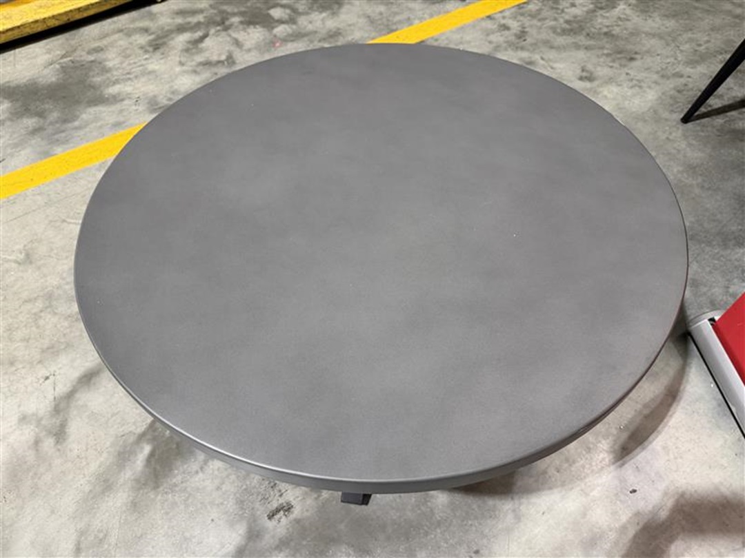 A contemporary concrete-top round coffee table supported by strong metal legs, bringing modern industrial style and durability to your living space.