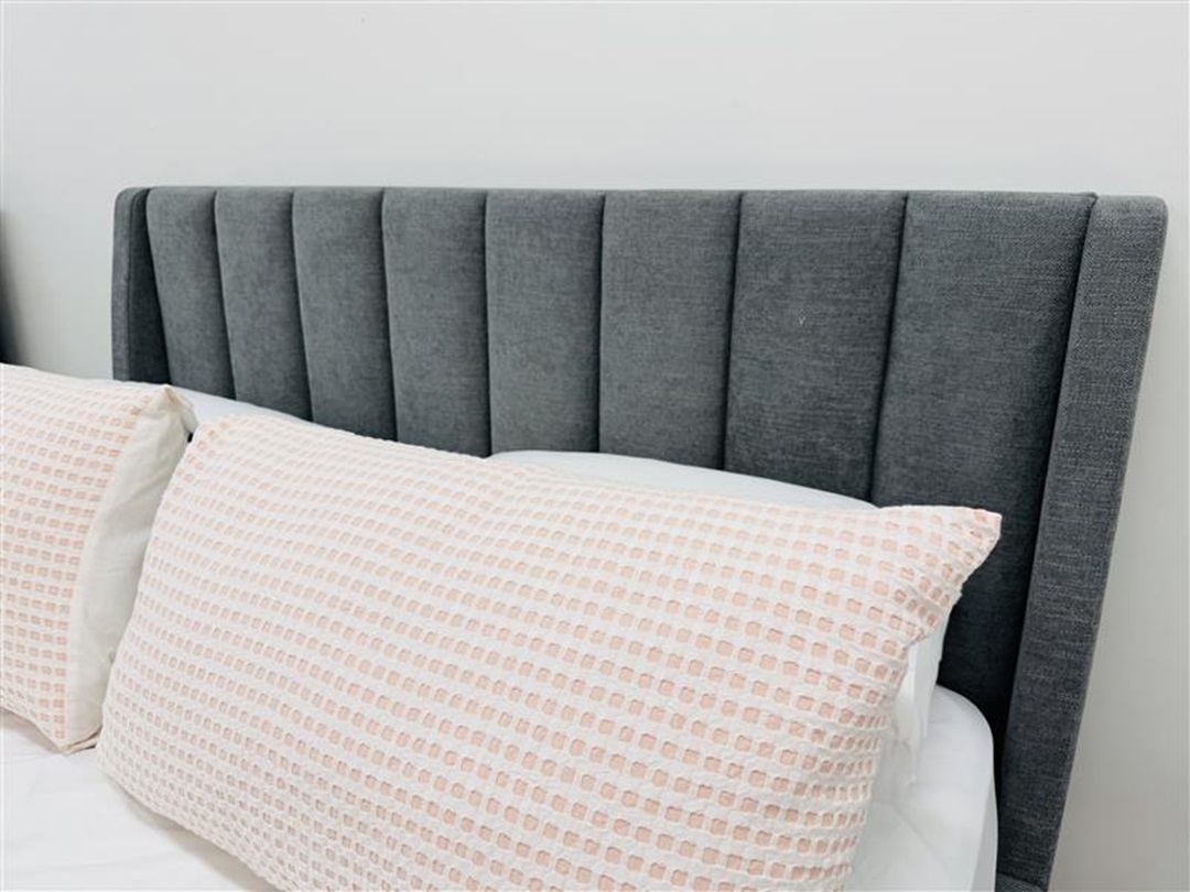 A comfortable and stylish king single bed upholstered in grey fabric—ideal for kids, teens, or guest rooms.