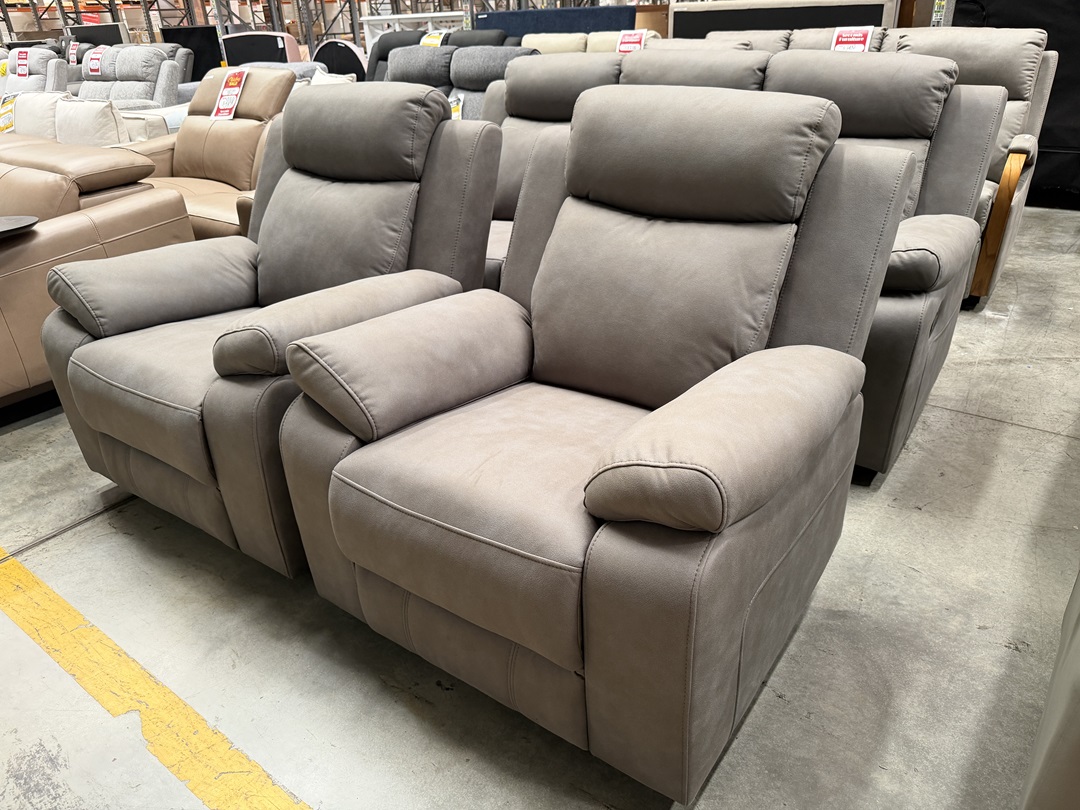 A compact yet luxurious 2 seater sofa in ash grey fabric, featuring an electric extendable footrest and a matching chaise. Designed for modern comfort and relaxation, it offers the perfect blend of function and style.