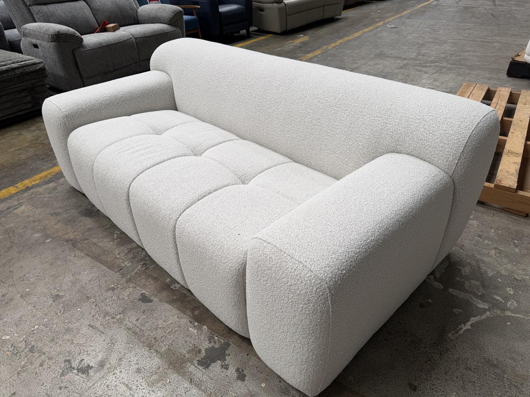 A bright and inviting 3-seater sofa upholstered in soft snow-white fabric. Designed with plush cushioning and a clean modern profile for a fresh, airy look.